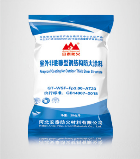 室外非膨胀型钢结构防火涂料是指涂层厚度大于7 mm,小于等于45 mm,呈粒状面,密度较小,热导率低,耐火时限在3h以上的钢结构防火涂料。
